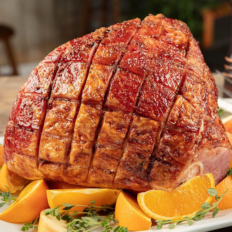 Enjoy the best ham-eating experience with our Hickory-Smoked City Hams. Our Half-Cut Hickory-Smoked City Ham brings you the sweet honey and smoky flavor in a size manageable for your occasion. We use fresh hams that are brined and slow-smoked for fully cooked perfection. We then vacuum seal the half-cut ham without slicing so that you can create the slice thickness you prefer at home. Serve this ham at room temperature or warm to your preference. We guarantee delicious tastes in every bite!